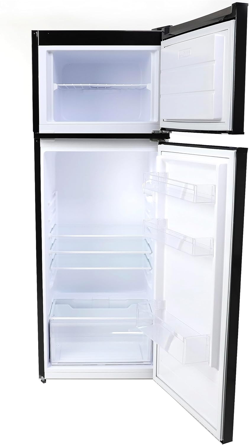 FUNCTIONAL DESIGN: 7.4 Cu.Ft. of refrigerator space is perfect for food, soda, beer, or other beverages with a 1.4 cu.ft. top-mounted freezer section for frozen goods