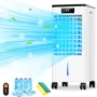 【Innovative Top Water Tank Convenience】Evaporative air cooler with wheels features a washable water tank, enhancing water recycling and offering prolonged cool air. When ice packs and ice water are not added, it cools like a normal fan.With a 1.98-gal combined capacity and visible water level indicator, along with 4 ice packs, it provides up to 2-4 hours of cooling.The remote control and top touch design is convenient for the elderly and pregnant women, with no bending required