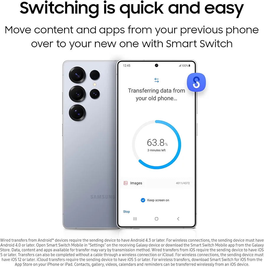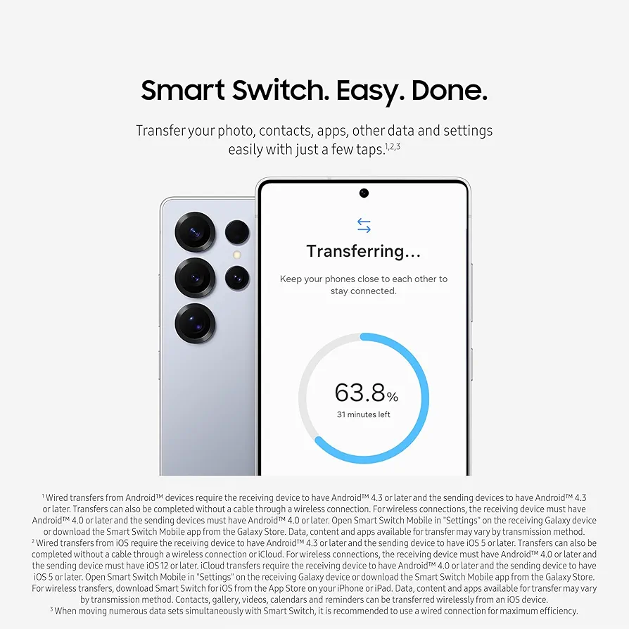 SWITCHING IS QUICK & EASY: With Smart Switch, you can move your pics, videos, music, apps, contacts and convos to their new home, safely and securely, in just a few simple steps.